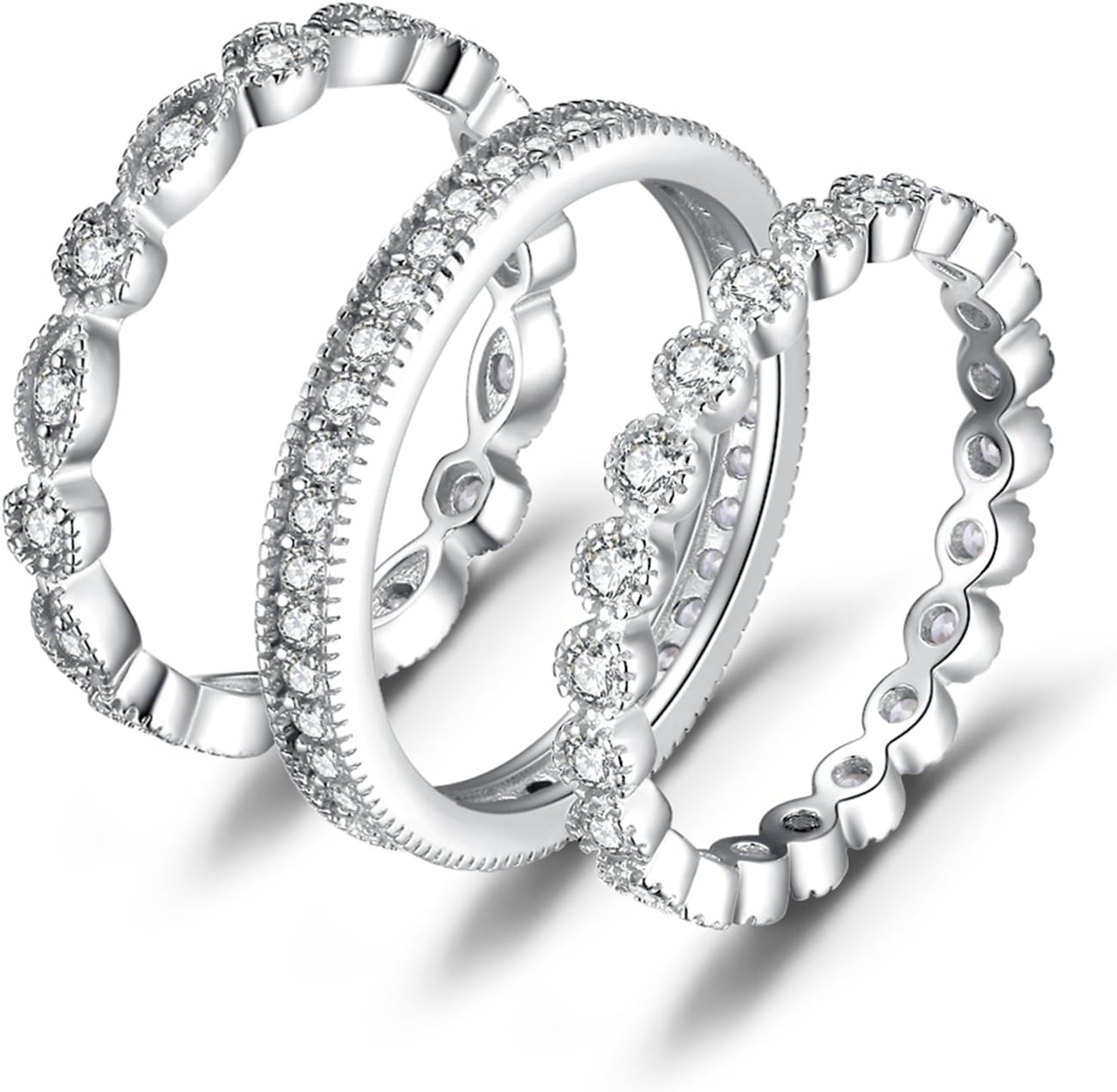 - √WEDDING STACKABLE RING SETS FOR HER: Wearing this love ring is like every drop of water is integrated into the body, a clever way to show the female charm and expand a woman’s fashion wardrobe with a modern, on-trend style. These wedding ring sets for her could be worn together or alone to form a unique and exciting personality!