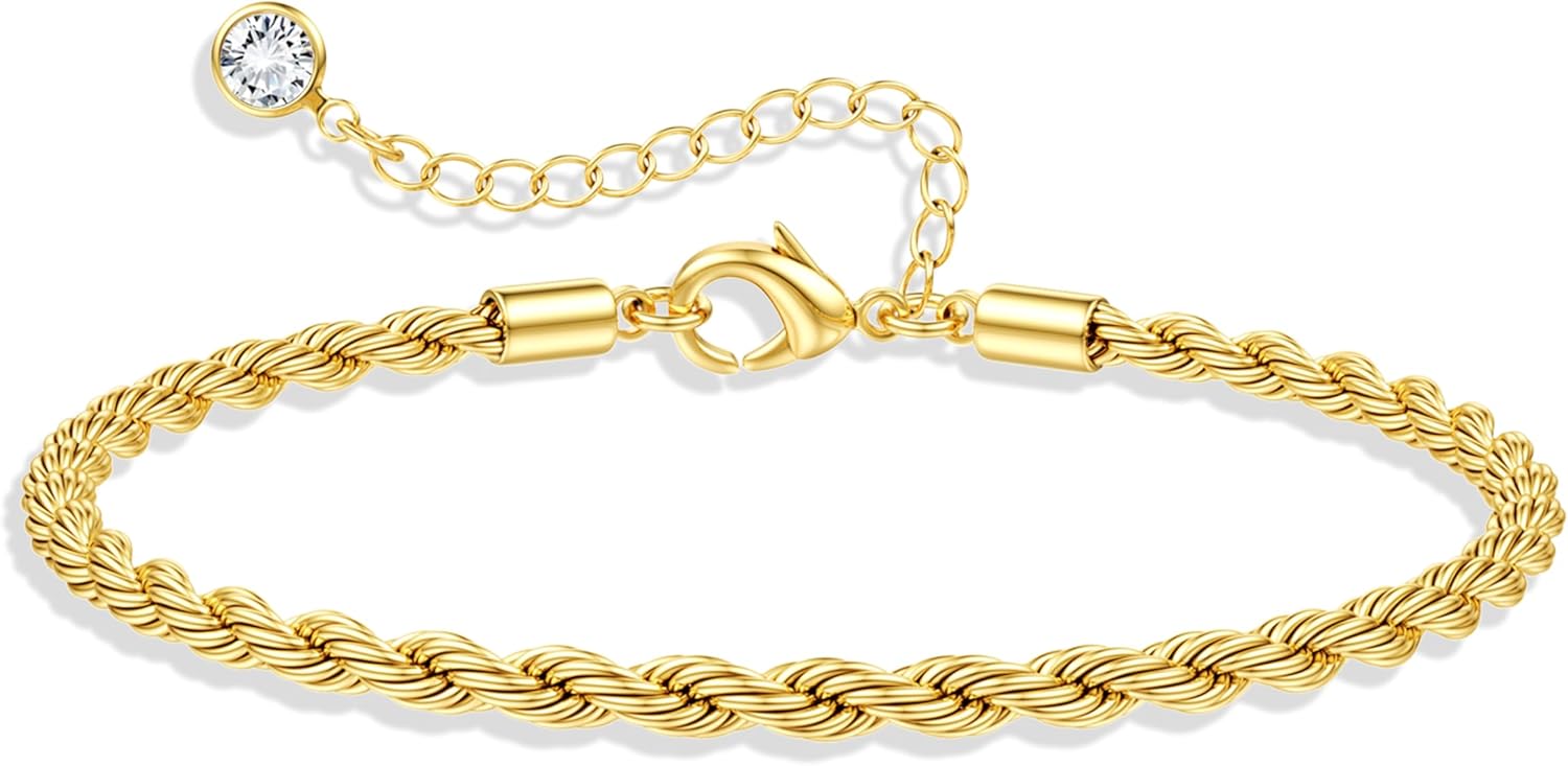 - Durable Gold Chunky Bracelets for Women: Crafted with robust brass materials, our sweatproof gold plated rope chain bracelets is designed to resist deformation and maintain their shape. Don’t worry about breaking during transportation or after wearing our adjustable chunky gold plated rope chain bracelets, it is very sturdy and durable.