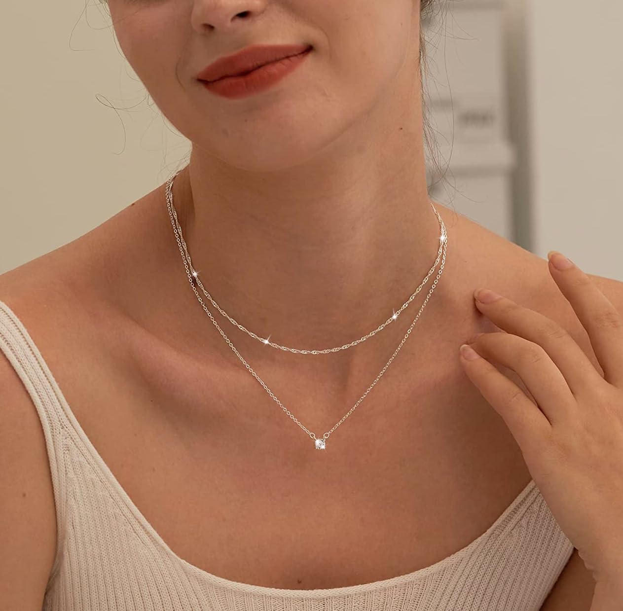 - Dainty Silver Necklace Material: This necklace is made from AAAA+ cubic zirconia. The chain is Silver plated, ensuring no fading. It’s nickel-free, lead-free, and hypoallergenic.