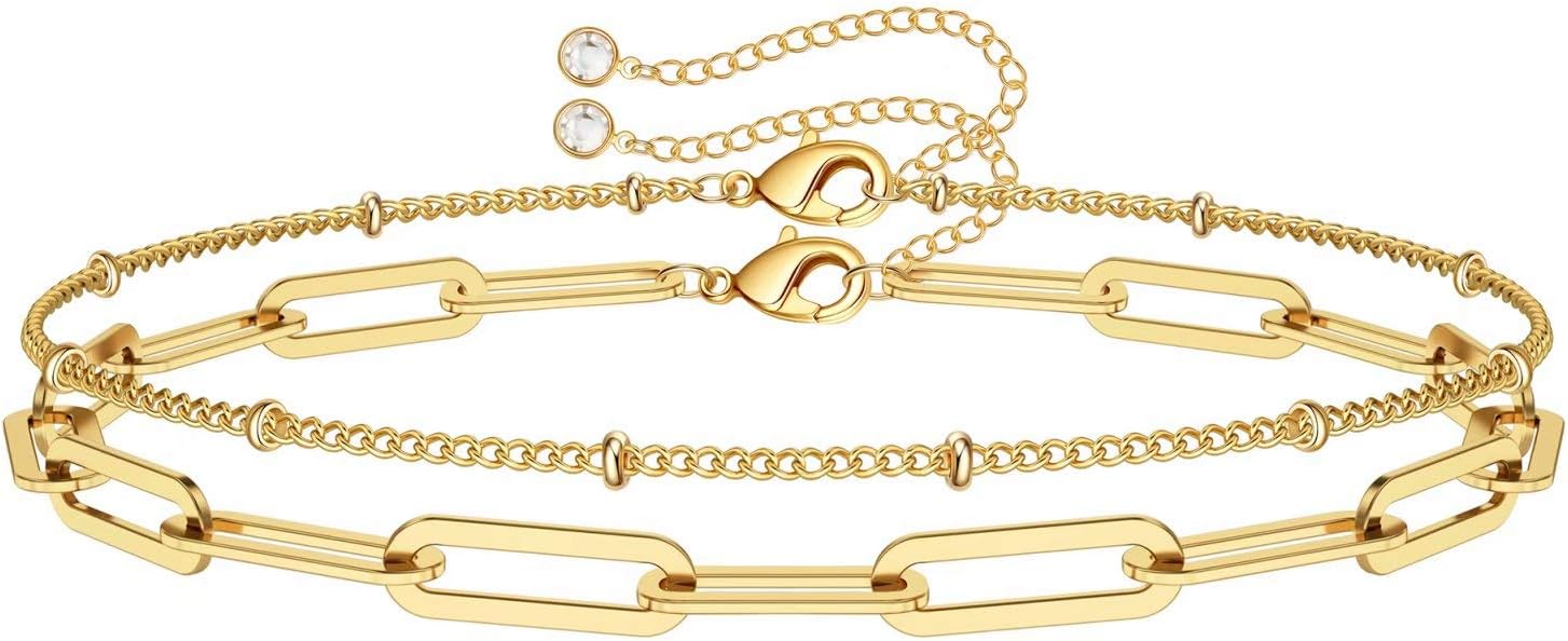 - MATERIAL: 14K-gold-plated layered chain bracelets, which doesn’t fade surely. Color will last a long time without tarnish. No harm to skin, hypoallergenic, reducing the possibility of rash or any irritation.